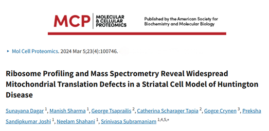 1. Dagar S, Sharma M, Tsaprailis G, Tapia CS, Crynen G, Joshi PS, Shahani N, Subramaniam S. Ribosome Profiling and Mass Spectrometry Reveal Widespread Mitochondrial Translation Defects in a Striatal Cell Model of Huntington Disease. Mol Cell Proteomics. 2024 Apr;23(4):100746.