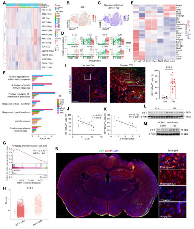 圖3: scRNA-seq驗證IRF1是TBI中促炎星形膠質細胞激活的關鍵調控因子