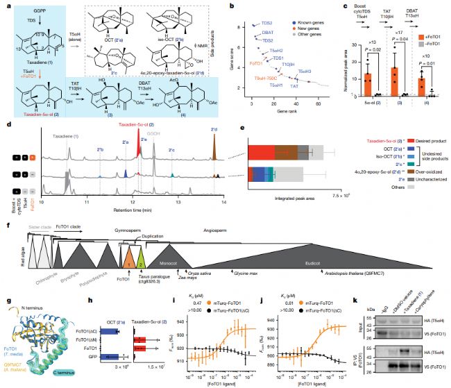 除 FoTO1 外,研究團(tuán)隊(duì)還發(fā)現(xiàn)了另外7個(gè)關(guān)鍵基因,包括 T9αH-750C、T7AT、T9dA、T7dA、T1βH-184、T1βH-686 以及 PCL。這些基因參與了紫杉醇生物合成的不同步驟,如氧化、乙酰化和去乙酰化等。