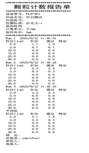 5.設定參數:粒徑范圍10μm、25μm,檢測體積5ml/次,重復檢測3次。