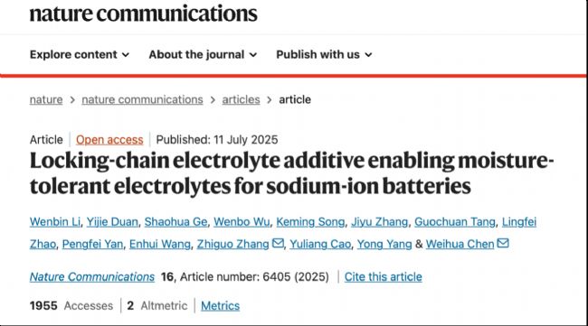 在新能源領域,鈉離子電池因其資源豐富、成本低廉等優勢,被視為未來大規模儲能的理想選擇。然而,電解液的穩定性一直是制約鈉離子電池發展的關鍵因素之一。近期,鄭州大學陳衛華團隊以“Locking-chain electrolyte additive enabling moisture-tolerant electrolytes for sodium-ion batteries”為題,在《Nature Communications》上發表相關研究,通過創新性地使用 QSense QCM-D 技術,深入解析了新型電解液添加劑對鈉離子電池性能的提升機制,為這一領域帶來了新的突破。