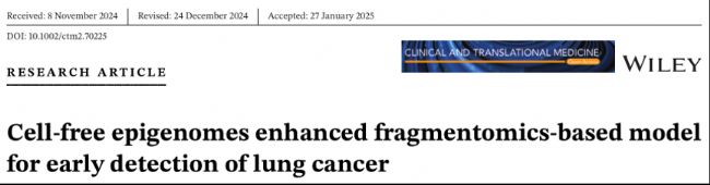 標題:Cell-free epigenomes enhanced fragmentomics-based model for early detection of lung cancer(基于細胞游離表觀組學增強的片段組學模型用于肺癌早期檢測)