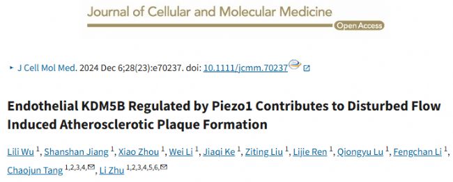參考文獻:Wu L, Jiang S, Zhou X, Li W, Ke J, Liu Z, Ren L, Lu Q, Li F, Tang C, Zhu L. Endothelial KDM5B Regulated by Piezo1 Contributes to Disturbed Flow Induced Atherosclerotic Plaque Formation. J Cell Mol Med. 2024 Dec;28(23):e70237. doi: 10.1111/jcmm.70237. PMID: 39643939; PMCID: PMC11624123.