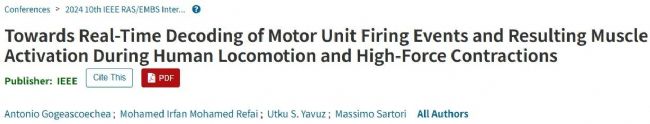 Gogeascoechea, Antonio, et al. "Towards real-time decoding of motor unit firing events and resulting muscle activation during human locomotion and high-force contractions." 2024 10th IEEE RAS/EMBS International Conference for Biomedical Robotics and Biomechatronics (BioRob). IEEE, 2024.