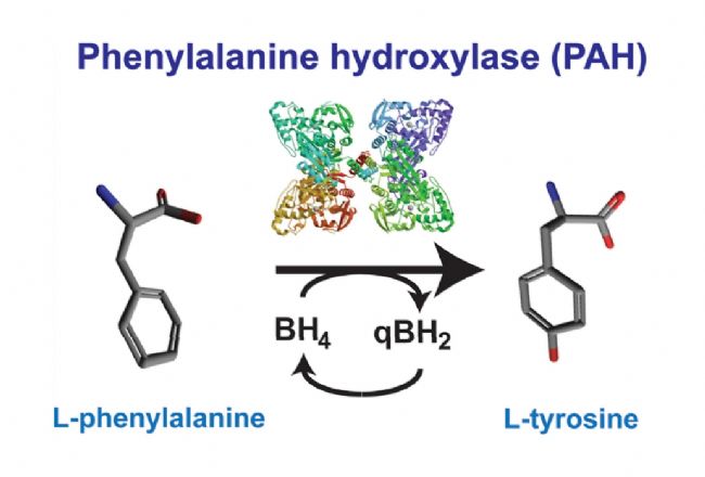 圖1. 苯丙酮尿癥(PKU)的相關分子機制:苯丙氨酸羥化酶(PAH)反應[1]