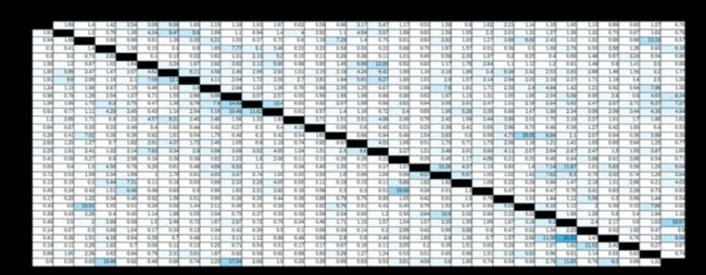 圖1:熒光溢出擴散矩陣(SSM)——展示染料之間的光譜重疊情況。