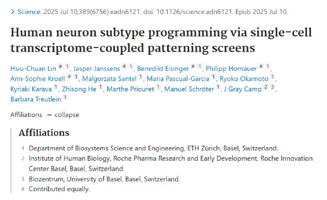 Lin HC, Janssens J, Eisinger B, et al. Human neuron subtype programming via single-cell transcriptome-coupled patterning screens. Science. 2025 Jul 10;389(6756):eadn6121. doi: 10.1126/science.adn6121.