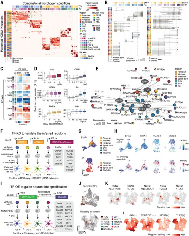 通過單細胞水平的基因編輯和過表達實驗,驗證了形態發生素通過特定轉錄因子調控網絡(GRNs)決定神經元亞型的機制。