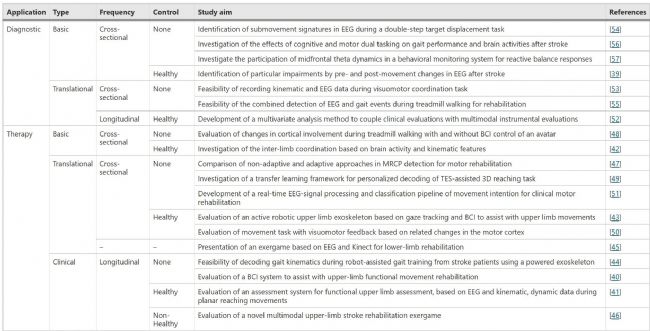 運動事件檢測:所有研究都使用運動學或動力學來檢測運動開始 / 結束或離線處理中的運動事件,部分研究使用硬件或數字信號同步。