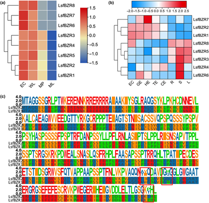 圖1 雜交楓香中LsfBZR1/2的表達模式及序列分析。