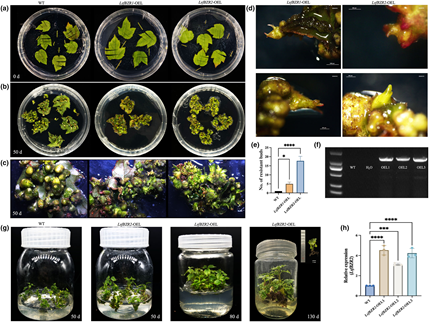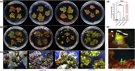 圖3 過表達LsfBZR2正向調控雜交楓香離體器官發生中的芽再生。