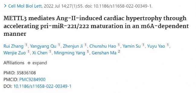 在心血管疾病的研究領域,心肌肥厚作為一種常見的病理現象,一直是科學家們關注的熱點。心肌肥厚不僅影響心臟的正常功能,還可能進一步發展為心力衰竭,嚴重威脅患者的生命健康。近年來,越來越多的研究表明,表觀遺傳修飾在心肌肥厚的發生和發展中起著重要作用。其中,m6A(N6-甲基腺嘌呤)修飾作為一種重要的RNA表觀遺傳修飾方式,受到了廣泛關注。本文將詳細介紹一項最新研究成果,即METTL3通過加速m6A依賴的pri-miR-221/222成熟介導Ang-II誘導的心肌肥厚,旨在為該領域的研究人員提供一份詳實的參考和指導。