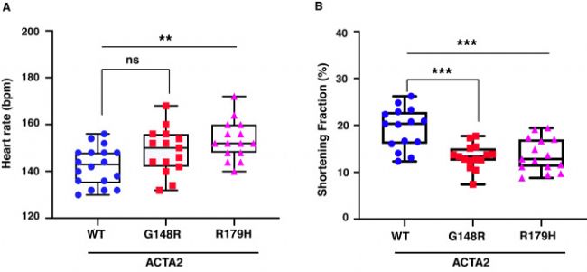 研究人員報(bào)道了一位攜帶ACTA2基因Gly148Arg (G148R)雜合變異的患者案例,并成功利用斑馬魚(yú)模型模擬了由人類ACTA2突變導(dǎo)致的心臟表型。這一研究不僅深刻揭示了ACTA2基因在心血管發(fā)育過(guò)程中的核心作用,還為深入理解ACTA2突變?nèi)绾我l(fā)心臟功能障礙提供了堅(jiān)實(shí)的理論基礎(chǔ)。