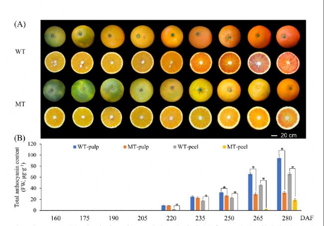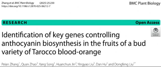 參考文獻: Zhang, P., Zhao, Q., Song, Y. et al. Identification of key genes controlling anthocyanin biosynthesis in the fruits of a bud variety of Tarocco blood-orange. BMC Plant Biol 25, 230 (2025). Doi:0.1186/s12870-025-06212-7.