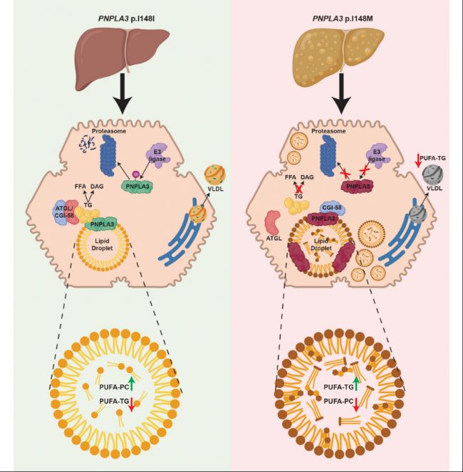 PNPLA3(patatin-like phospholipase domain containing 3)基因編碼一種稱為adiponutrin的蛋白質,主要在肝臟和脂肪組織中表達,具有甘油三酯水解酶和乙酰輔酶A依賴性溶血甘油三酯酰基轉移酶活性,在脂質代謝中發揮著重要調控作用。