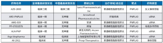 表1. 部分靶向PNPLA3靶點藥物研發進展