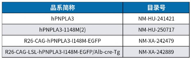 南模生物長期致力于藥物靶點人源化模型研究領域,針對PNPLA3開發了一系列人源化小鼠模型,可用于MASLD臨床前研究和藥效評價。