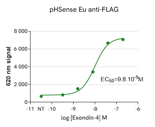 圖2.使用pHSenseEu Anti-Flag檢測Exendin-4誘導(dǎo)的GLP1R-Flag(HEK293)內(nèi)化
