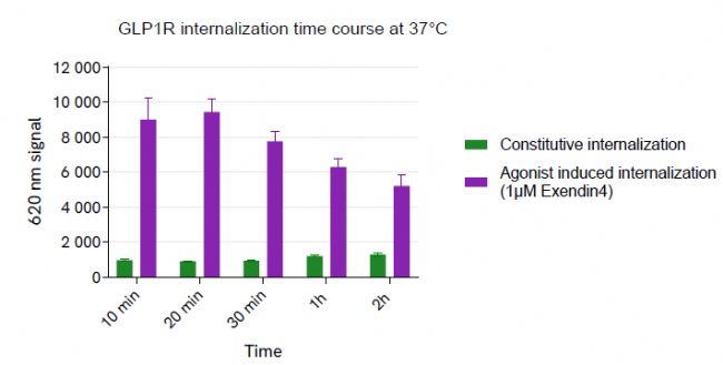 圖3.使用pHSenseEu Anti-Flag檢測Exendin-4誘導(dǎo)的GLP1R-Flag(HEK293)實(shí)時內(nèi)化檢測