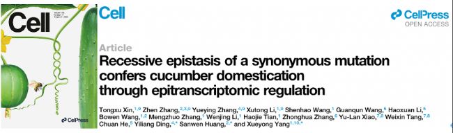 Xin T, Zhang Z, Zhang Y, Li X, Wang S, Wang G, Li H, Wang B, Zhang M, Li W, Tian H, Zhang Z, Xiao YL, Tang W, He C, Ding Y, Huang S, Yang X. Recessive epistasis of a synonymous mutation confers cucumber domestication through epitranscriptomic regulation. Cell. 2025 Jul 15. doi: 10.1016/j.cell.2025.07.006.