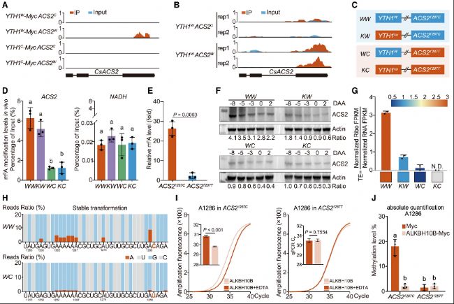 (J) 絕對定量RT-PCR結(jié)果顯示ACS21287C 中A1286的m6A修飾水平。