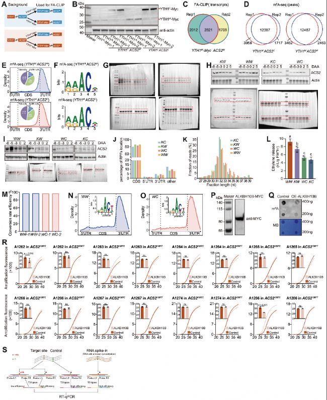 - 免疫印跡與核糖體圖譜分析:通過免疫印跡檢測不同基因型植株中ACS2蛋白的水平,結(jié)合核糖體圖譜分析ACS2的翻譯效率(TE),驗證1287位C>T同義突變及YTH1對ACS2蛋白水平和TE的調(diào)控效應。