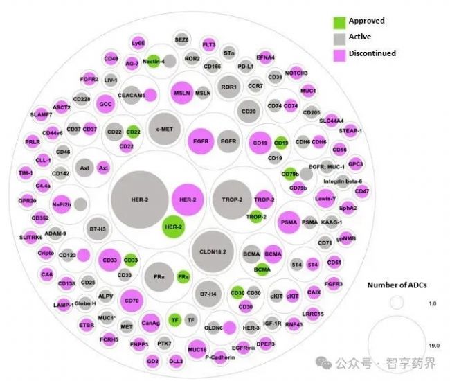以及2025年批準(zhǔn)AstraZeneca/Daiichi Sankyo聯(lián)合研制的靶點(diǎn)為TROP2的Datopotamab Deruxtecan(Datroway)用于HR+/HER2– BC;Abbvie研制的靶點(diǎn)為c-Met 的Telisotuzumab vedotin(EMRELIS™)用于NSCLC。