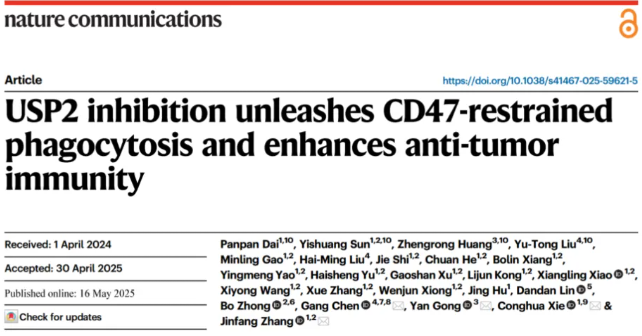 CD47/SIRPα軸傳遞“不要吃我”的信號,從而阻礙腫瘤細(xì)胞的吞噬清除。盡管靶向CD47的阻斷抗體在臨床前模型中顯示出有希望的抗腫瘤效果,但涉及人類癌癥患者的臨床試驗尚未產(chǎn)生理想的結(jié)果。探索CD47的調(diào)控機制對于設(shè)計更有效的組合療法至關(guān)重要。在這里,作者報告說,抑制USP2會促進(jìn)CD47降解并重塑腫瘤微環(huán)境(TME),從而增強抗PD-1免疫治療。從機制上講,USP2與CD47相互作用,通過去泛素化修飾使其蛋白穩(wěn)定。抑制USP2會破壞CD47的穩(wěn)定性,從而增強巨噬細(xì)胞的吞噬作用。單細(xì)胞RNA測序顯示抑制USP2重編程TME,具體表現(xiàn)為抑制USP2增加M1巨噬細(xì)胞和CD8+T細(xì)胞的浸潤,同時減少M2巨噬細(xì)胞的浸潤。將ML364與抗PD-1抗體聯(lián)合使用可減輕小鼠模型中的腫瘤負(fù)擔(dān)。在臨床水平上,USP2低表達(dá)預(yù)示著對抗PD-1治療的更好反應(yīng)。作者的發(fā)現(xiàn)揭示了USP2對CD47的調(diào)控機制,靶向這一信號軸可以增強抗腫瘤免疫。