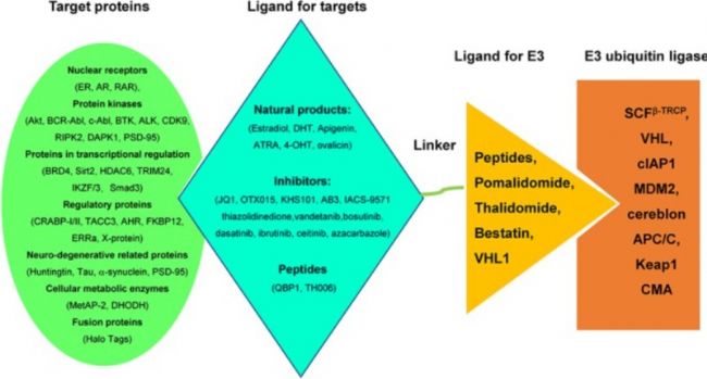 圖:靶向蛋白、靶蛋白配體、E3泛素連接酶配體和E3泛素連接酶的總覽