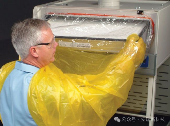 2、“袋進(jìn)袋出”箱體為全密封箱體,采用獨(dú)特的HEPA下密封設(shè)計(jì),這樣可保證箱體內(nèi)部不受污染,減少危險(xiǎn)源的傳播,考慮更換時(shí)的安全性,箱體袋口和箱體為整體焊接,保證更換時(shí)密封圈和套袋不至于脫落,袋進(jìn)袋出的密封袋采用TPU(熱塑性聚氨酯彈性體,此材料厚度高,有韌性耐磨,且抗老化)一類的專用安全袋,袋口帶有收緊裝置和廢棄袋的回收小袋。袋進(jìn)袋出箱體最大的特點(diǎn)是安裝、更換過濾器時(shí)均在專用PVC袋保護(hù)下進(jìn)行,過濾單元完全不與外界空氣接觸,從而保證了人員與環(huán)境的安全。