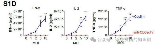 而且共刺激分子的加入也導致T細胞釋放了更多的細胞因子,包括IFNγ,IL-2和TNF-α(S1D)。