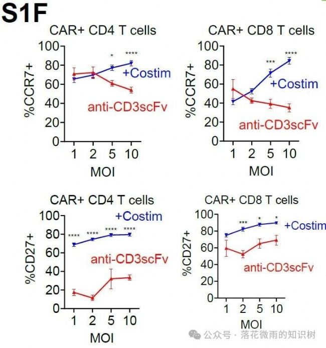 與含有共刺激分子的病毒顆粒相比,MDF VVPs制備的CAR-T細胞表面表達相當的CCR7和CD27記憶細胞標志物(S2C)。