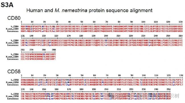 人源化小鼠模型具有局限性,并不能完全再現動物免疫系統的完整程度,特別是完全缺乏正常發育的次級淋巴組織和對異種移植物抗宿主病的易感性。為了解決這些局限性,作者在M nemestrina中開發了一個NHP模型,因為該物種允許用HIV-1衍生的慢病毒載體轉導。在這個模型中,作者使用了一種NHP/人交叉反應的抗CD20 CAR,此前已經證明在恒河猴體內使用體外制造的CAR-T細胞可以消除B細胞。為了使MDF蛋白適用于該模型,作者將抗人CD3 scFv替換為抗NHP CD3 scFv。人的CD58和CD80保留下來,因為這兩種蛋白在這兩個物種中的序列具有高度同源性(S3A)。