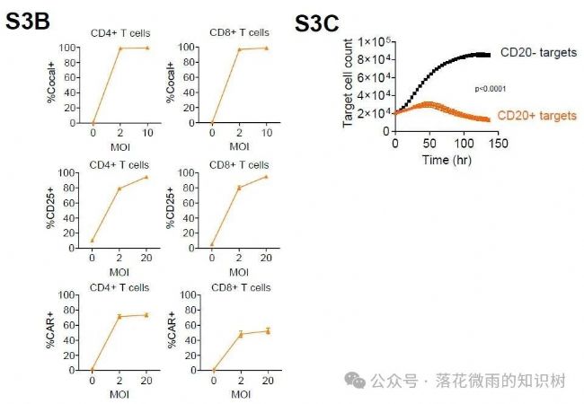 評估MDF VVPs的NHP替代物對M.nemestrina CD4和CD8 T細胞的結合、激活和轉導進行體外驗證(S3B)。與靶細胞LLC-MK2-NLO+/-CD20共培養,驗證CAR-T細胞的細胞殺傷功能(S3C)。總的來說,這些結果表明,NHP MDF VVPs結合、激活和轉導NHP T細胞的能力與人MDF VVPs相當。