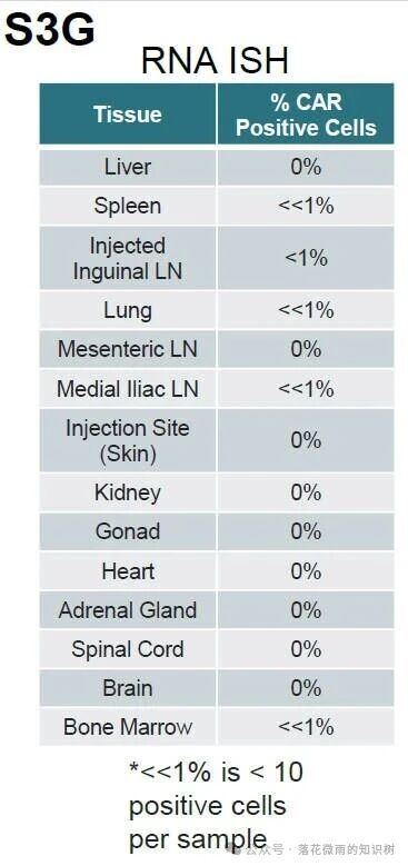 作者通過RNA ISH檢測了CAR基因的生物分布(S3G)。與ddPCR數據一致,作者在注射的部位inguinal lymph node和緊接著的medial iliac lymph node可以檢測到極少數細胞中CAR的表達。還在脾臟、骨髓和肺中檢測到低水平的信號,作者認為這些信號是CAR+細胞向這些部位轉運的標志。此外別的組織內依然檢測不到。總的來說,這些數據表明,VivoVec通過淋巴內注射,在沒有清淋的情況下,可以在免疫健全的NHP中有效地生成CAR-T細胞。生成的CAR-T細胞功能強大,導致B細胞清除長達76天。