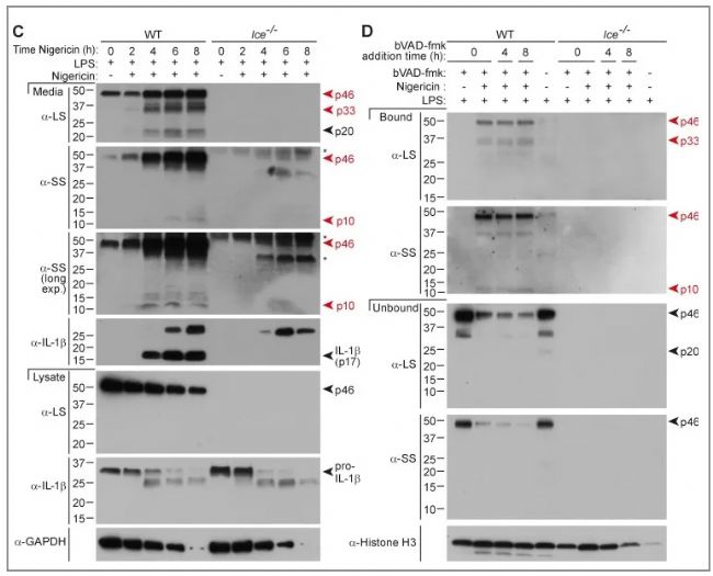 巨噬細胞中NLRP3誘導的caspase-1活性迅速發生,導致GSDMD和pro-IL-1β在細胞刺激后30分鐘內快速裂解,然后caspase-1活性消失,隨后發生細胞焦亡。在這個過程中,caspase-1活性物主要是p33/p10,在一小時內CDL裂解生成p20/p10終止酶活性。