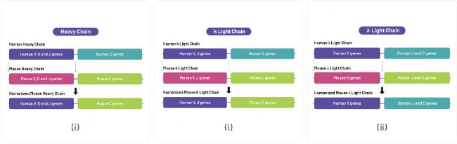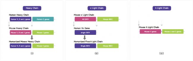賽業生物的HUGO-MabTM小鼠使用TurboKnockout® ES打靶技術,將(i)小鼠抗體重鏈和Kappa輕鏈可變區序列在原位被替換為人源可變區基因序列,不表達小鼠V(D)J序列,但保留了小鼠恒定區編碼基因和調控元件,以支持抗體類型轉換;另外將(ii)小鼠Lambda輕鏈可變區及恒定區序列全部替換為人源基因序列,不表達小鼠Lambda輕鏈序列。HUGO-Mab™小鼠中含有所有的人源抗體可變區序列,其多樣性豐富。面對抗原刺激時,能夠產生與野生型小鼠相同水準的強烈免疫反應,產生高效價和多樣性抗體。