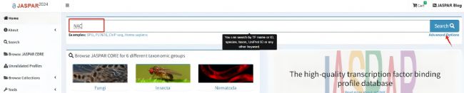 1.搜索轉錄因子家族:在JASPAR網站的搜索欄中輸入目標轉錄因子家族名稱“NAC”,點擊搜索。
