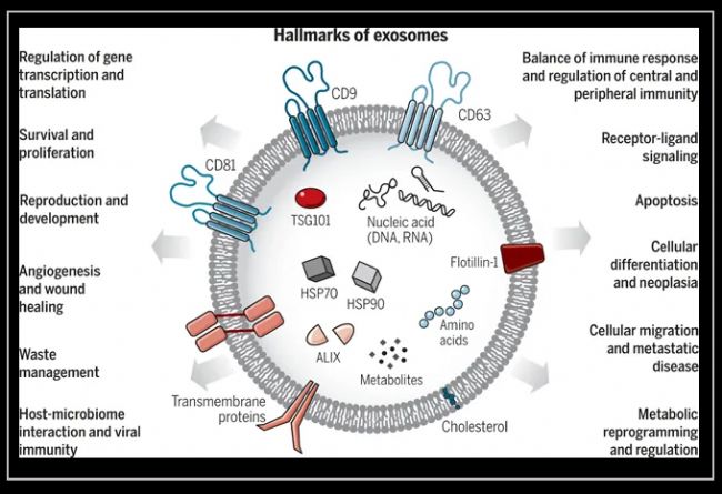 CD9、CD63和CD81屬于四萜類化合物,其特征是四個跨膜結構域和兩個細胞外結構域中最大的一個結構域中的特定折疊。所有細胞類型和組織都表達四萜蛋白的可變組合,其中一些主要存在于質膜上,如CD9;有些則存在于細胞內,如CD63。這類蛋白被認為是外泌體的特異性標記。然而,有文獻報道,這些蛋白質現在也已在凋亡小體和微泡中觀察到。
