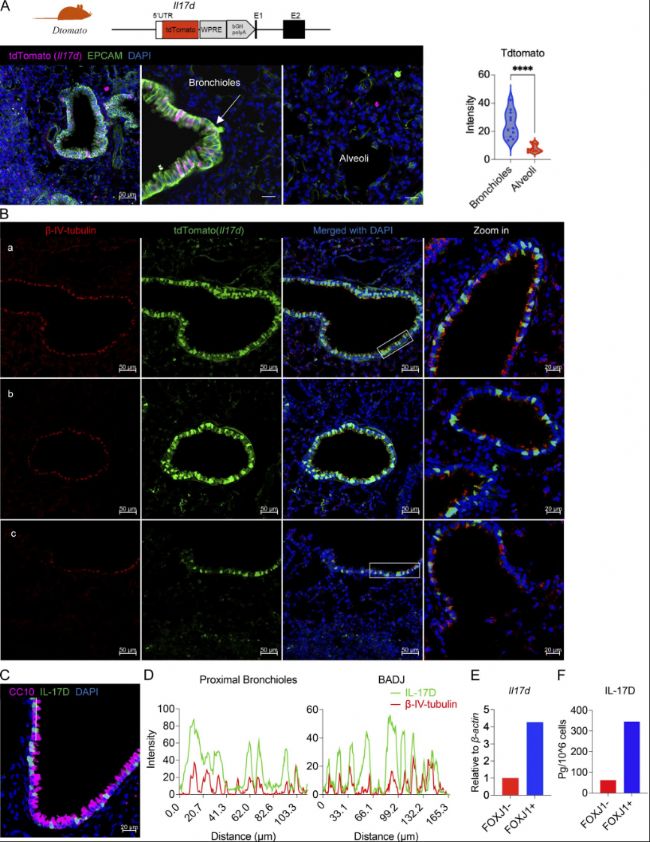 圖1:纖毛細胞是IL-17D的主要生產者。