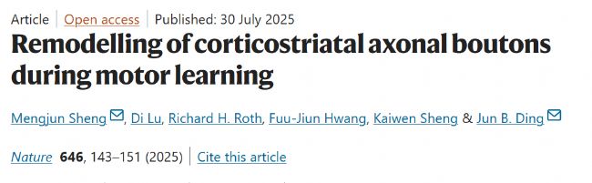 2025年7月30日,美國學者在Nature期刊上發表了題名為“Remodelling of corticostriatal axonal boutons during motor learning”的研究論文,本研究通過活體雙光子成像技術,首次揭示了成年小鼠運動學習過程中皮質-紋狀體軸突末梢的動態重構機制。
