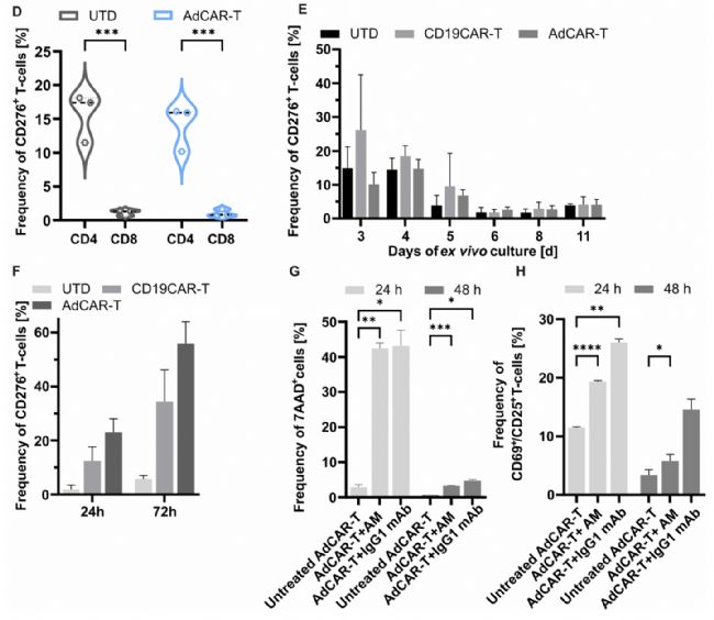 激活的 AdCAR-T 中 15–20% 表達 CD276,主要見于 CD4+亞群。