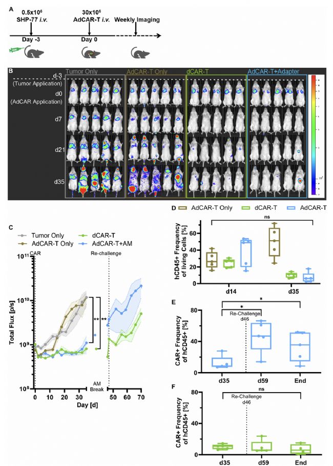 AM46 存在時 AdCAR-T 早期擴增,停藥后仍能被再次激活并清除二次攻擊瘤。