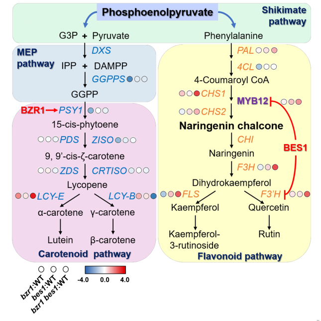 2、BR信號轉導組分參與調控類黃酮的生物合成