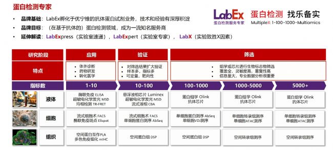 樂備實是國內專注于提供高質量蛋白檢測以及組學分析服務的實驗服務專家,自2018年成立以來,樂備實不斷尋求突破,公司的服務技術平臺已擴展到單細胞測序、空間多組學、流式檢測、超敏電化學發光、Luminex多因子檢測、抗體芯片、PCR Array、ELISA、Elispot、PLA蛋白互作、多色免疫組化、DSP空間多組學等30多個,建立起了一套涵蓋基因、蛋白、細胞以及組織水平實驗的完整檢測體系。