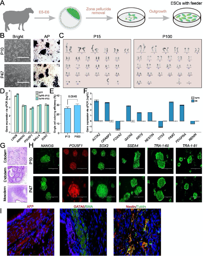 (1)TePR培養基支持綿羊ESC系的構建和長期穩定培養