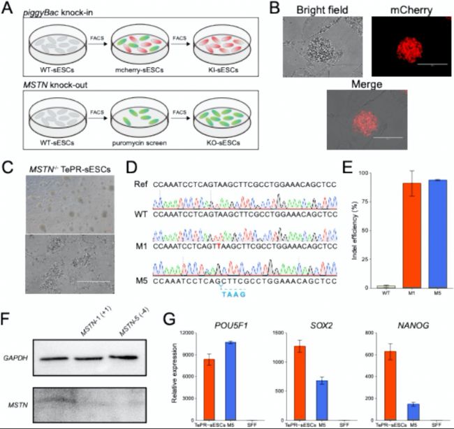 (C)MSTN基因敲除(MSTN-/-)的TePR-sESCs圖像。