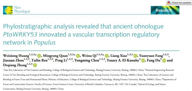 2025年7月,北京林業大學張德強教授課題組在New Phytologist(IF=8.1)發表了題為“Phylostratigraphic analysis revealed that ancient ohnologue PtoWRKY53 innovated a vascular transcription regulatory network in Populus”的研究論文。該研究借助DAP-seq技術揭示了全基因組復制(WGD)衍生的古老PS1 ohnologs(尤其PtoWRKY53)通過新功能化創新了楊樹維管轉錄網絡,為木本植物進化發育提供了新范式。藍景科信為該研究提供了DAP-seq技術支持。