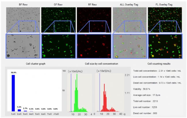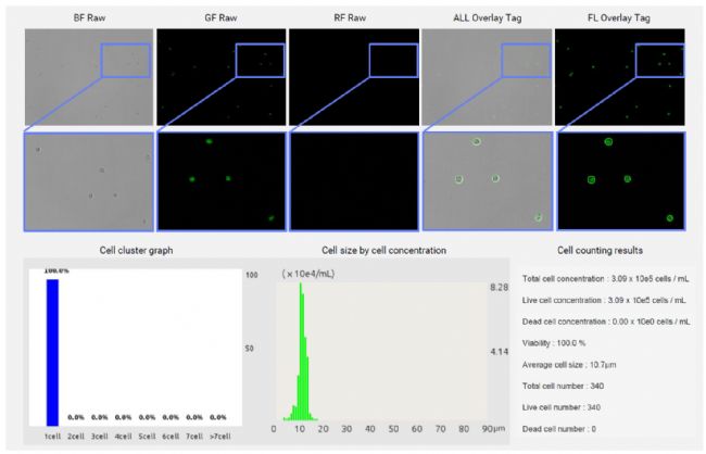 總之,LUNA-FX7在三通道成像(BF、GF和RF)方面的功能和靈敏度,以及復雜的標記算法,使您可以在進行昂貴的下游處理之前建立樣品通過與否的質量控制標準。