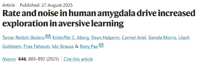 2025年8月27日,以色列學者在Nature期刊上發表了題名為“Rate and noise in human amygdala drive increased exploration in aversive learning”的研究論文,研究通過記錄人類杏仁核單神經元活動,揭示了在損益情境下探索行為的雙重神經機制。